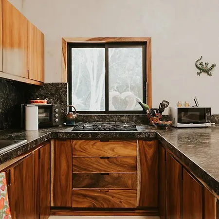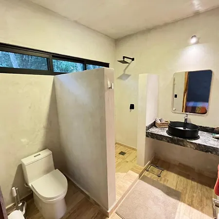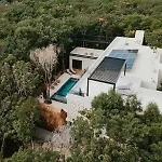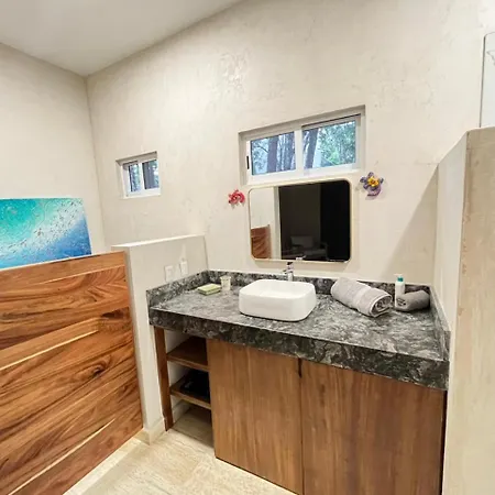 Situated 4.8 km from Faro Inclinado Leaning Lighthouse, Jungle Retreat With Master Suites Puerto Morelos villa invites guests to relax at a terrace.
